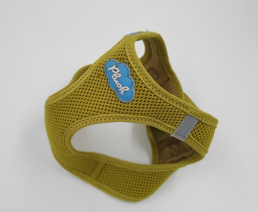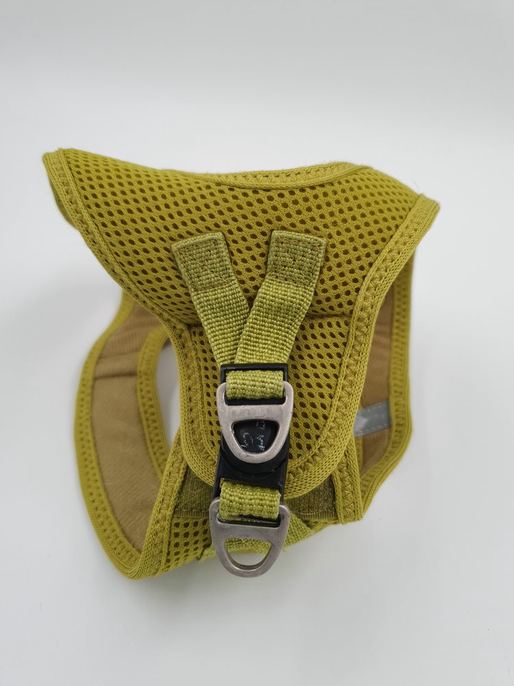 Hundegeschirr Westengeschirr Step-In Geschirr Plush, Gr. S 38 – 42 cm, Farbe gelbgrün, Material Mesh, verschliessbar auf Schulter mit Kettverschluss, zwei Ringe zum Einhängen der Leine