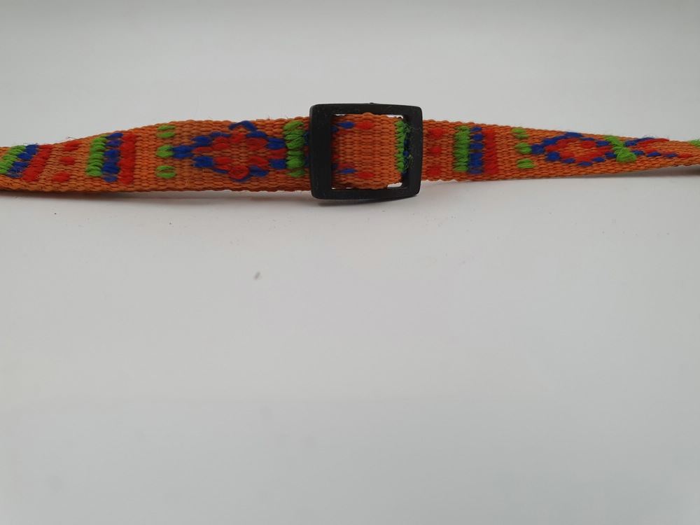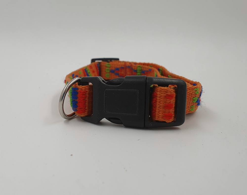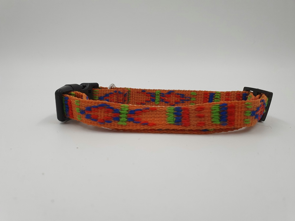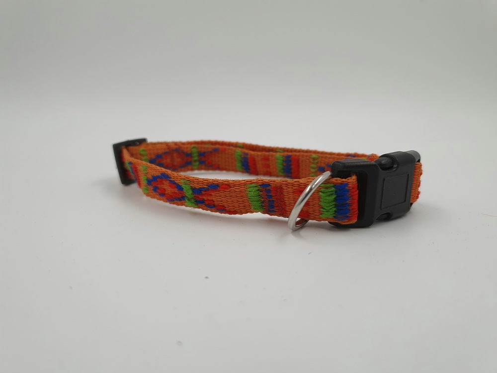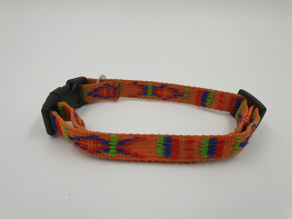 Hundehalsband Ethnomuster gewebt, orange mit blau, grün und rot, 27 – 45 x 2 cm