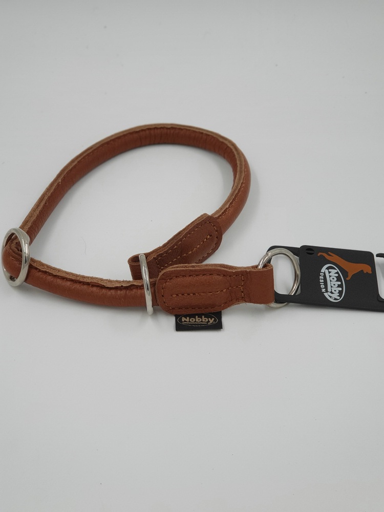 neues ungenutzes rundgenähtes Elchlederhalsband von Nobby mit Zugstopp, 60 cm, Farbe braun