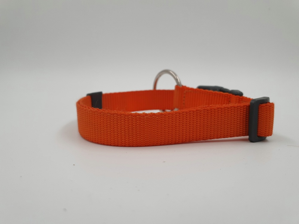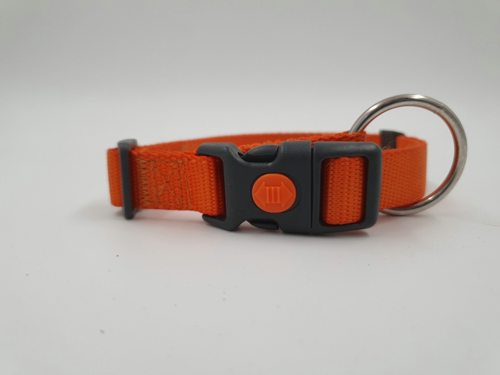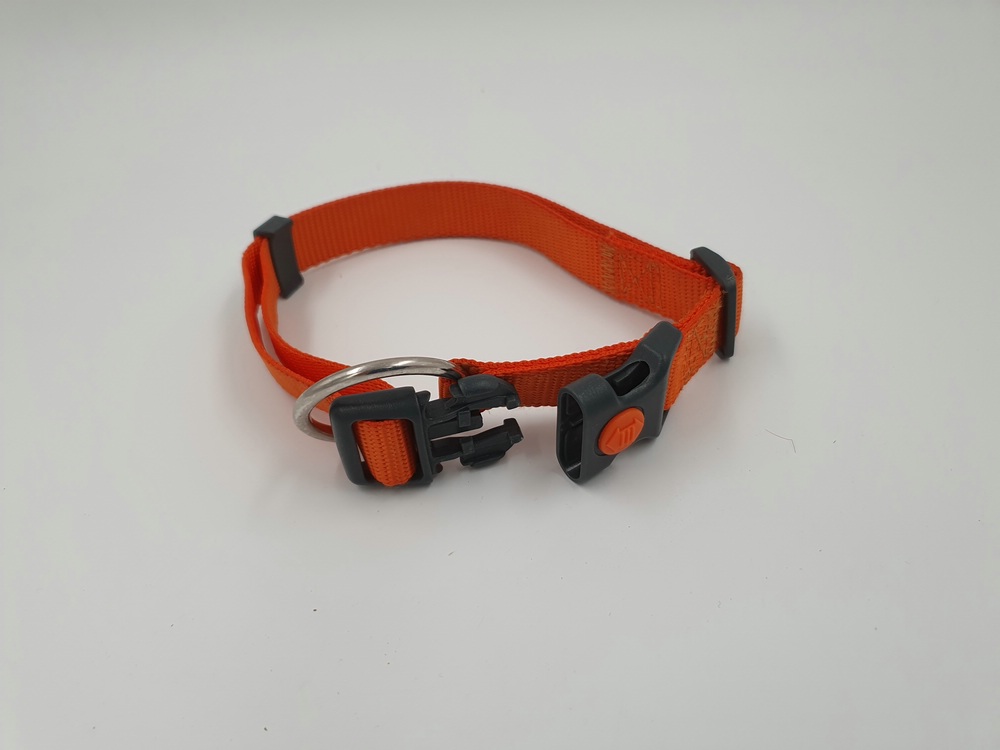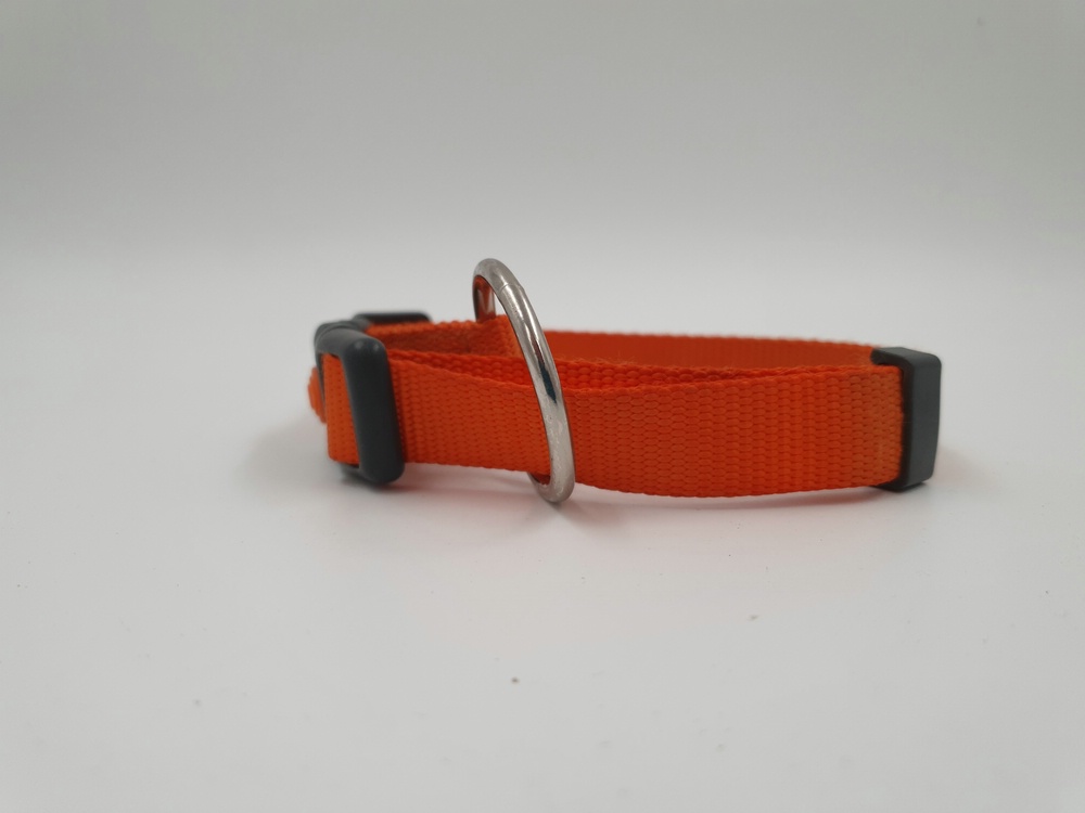 Hundehalsband Nylon, orange, 30 – 55 x 2 cm, schwarzer Klickverschluss mit Arretierung