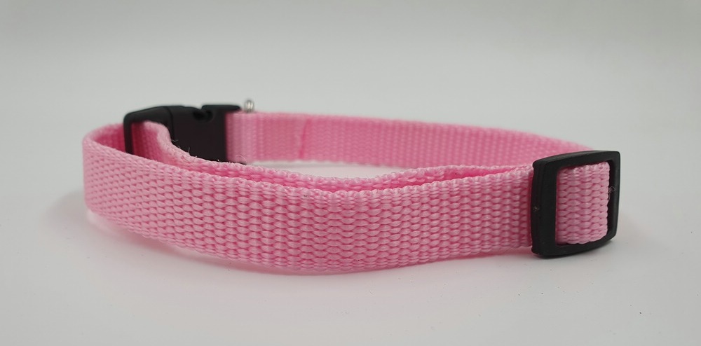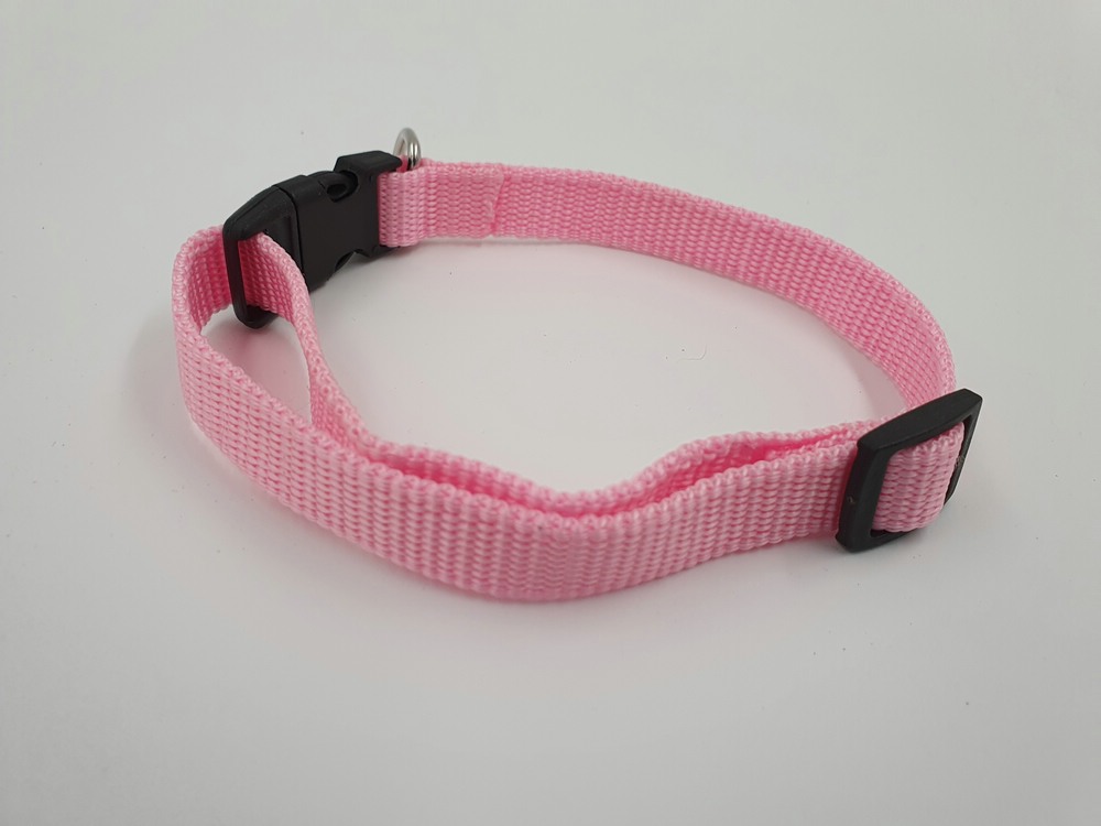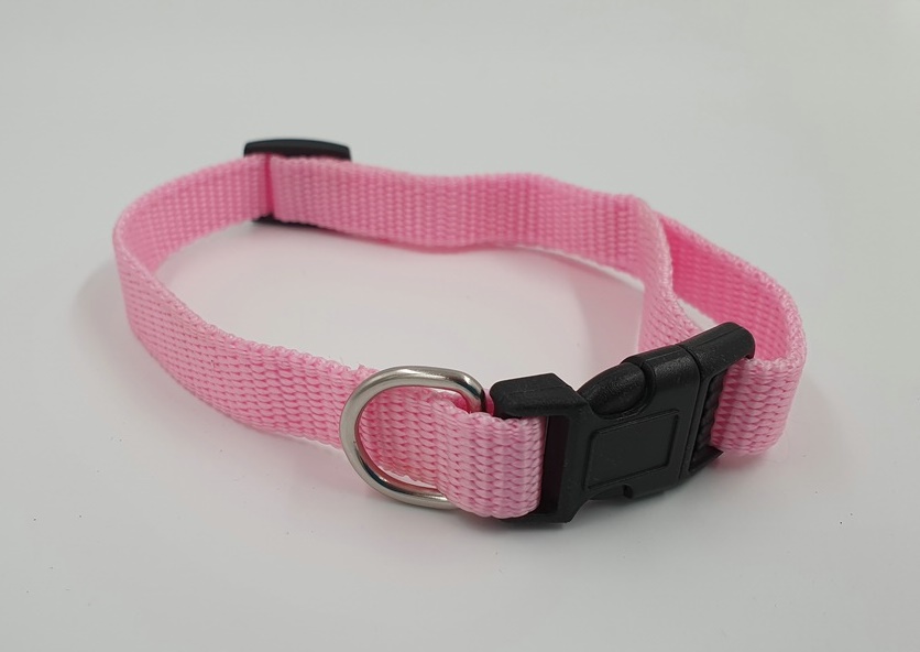 schmales Hundehalsband Nylon, rosa, 25 – 45 x 1,6 cm mit schwarzem Klickverschluss