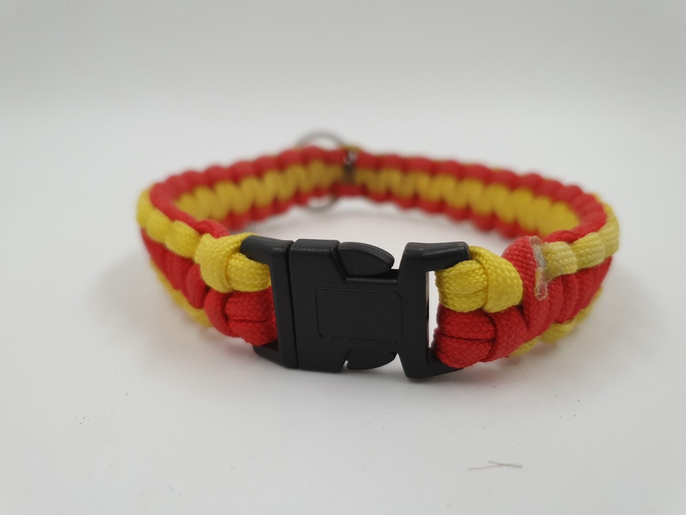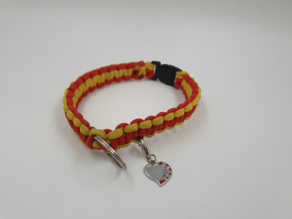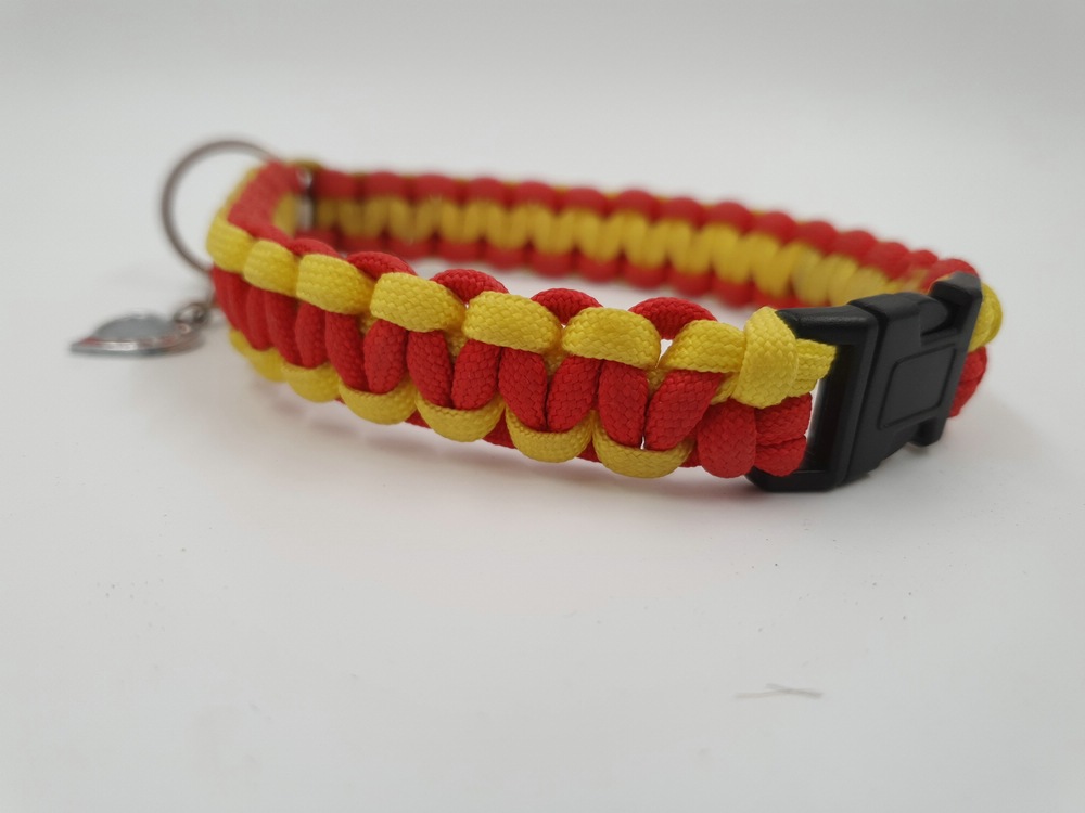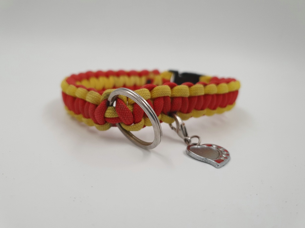 Hundehalsband Paracord, 34 x 2 cm, orange-gelb, schwarzer Klickverschluss mit Anhänger