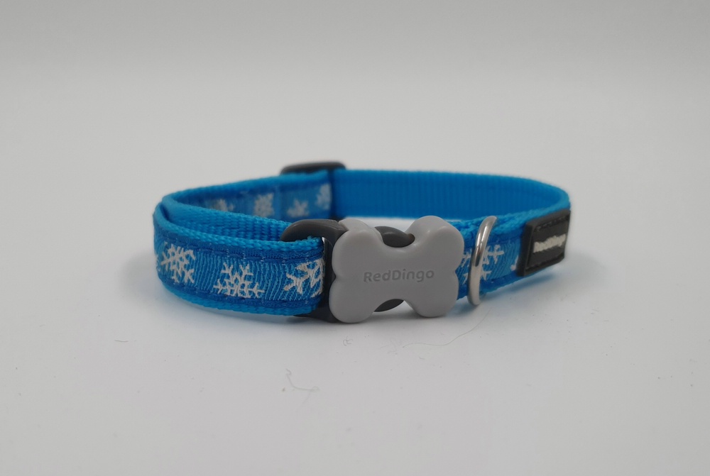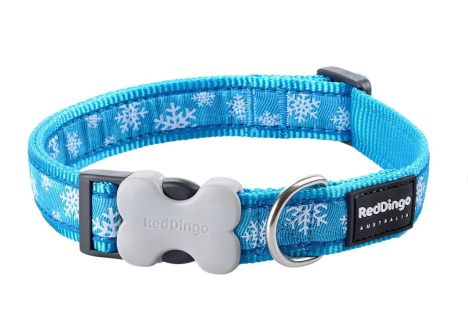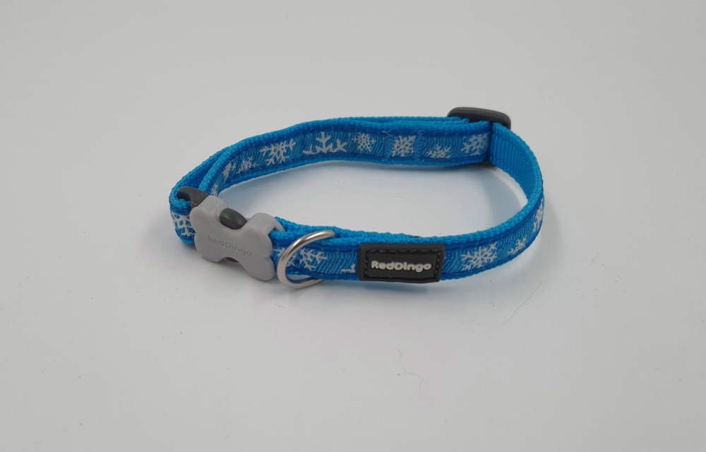 Hundehalsband Red Dingo Bucklebone türkis Schneeflocke, XS 20 – 32 x 1,2 cm