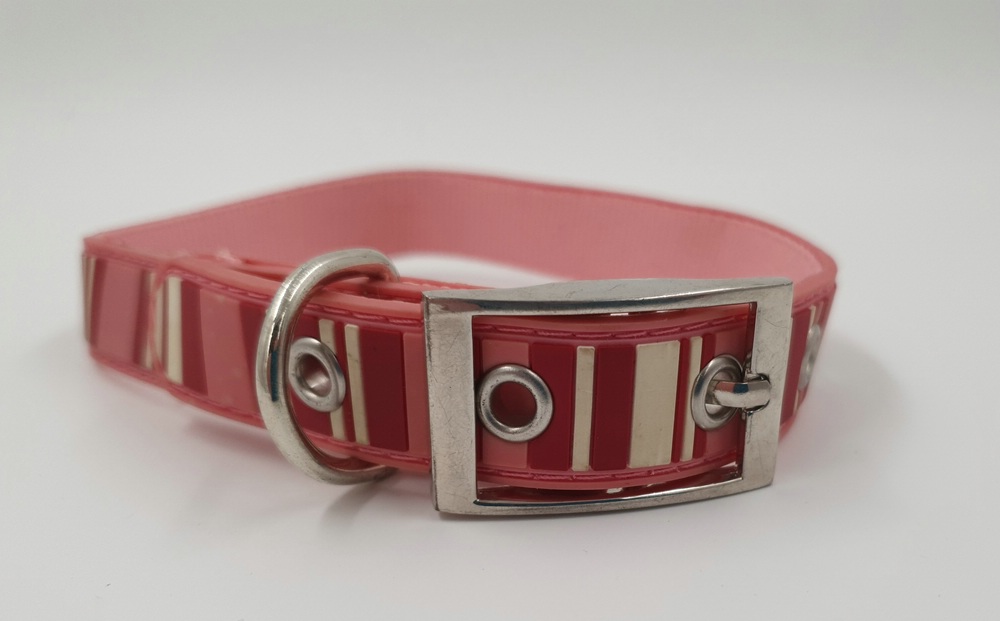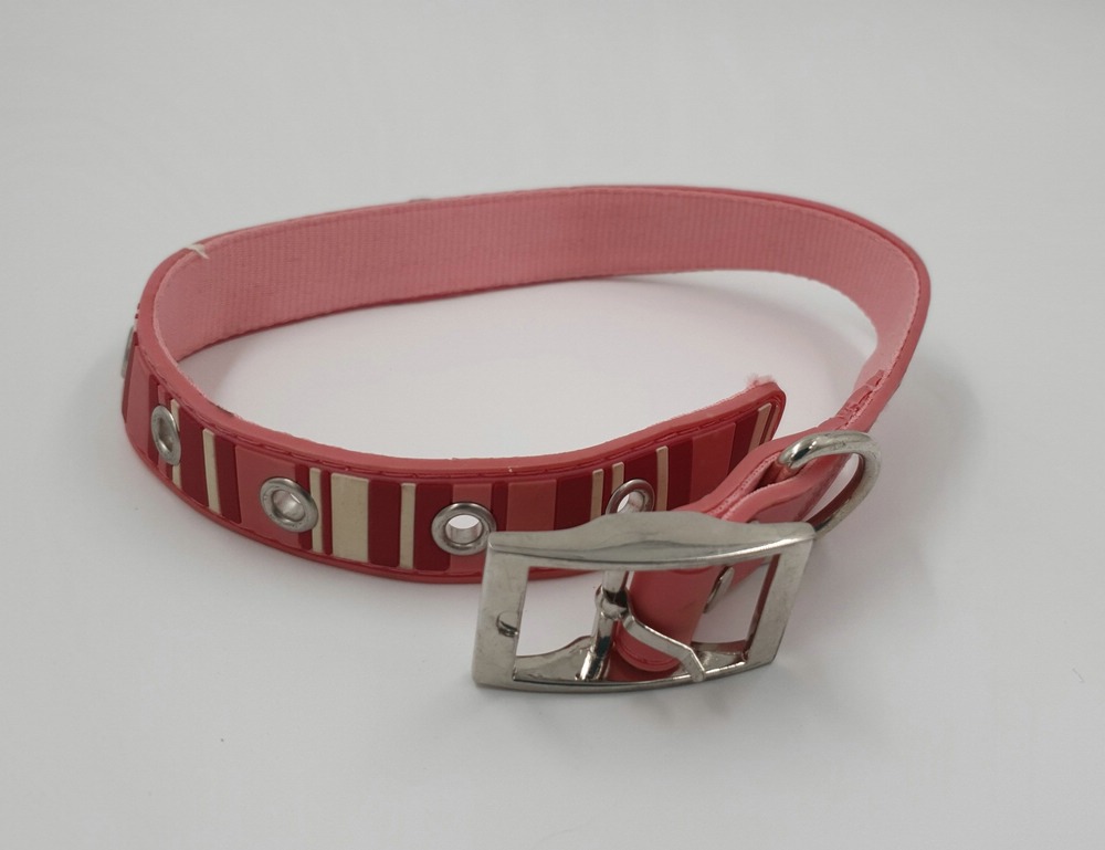 neues Hundehalsband rosa-gestreift, 45 x 2 cm, Halsumfang 30-40 cm, innen Nylon, Obermaterial unbekannt, aber abwaschbar