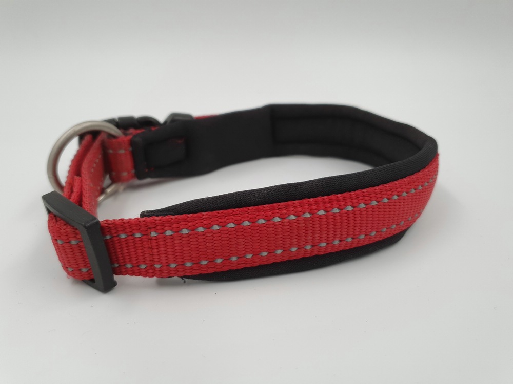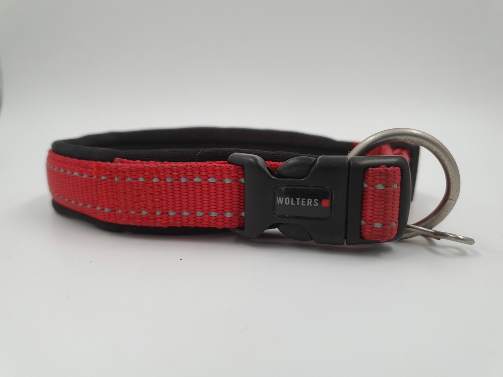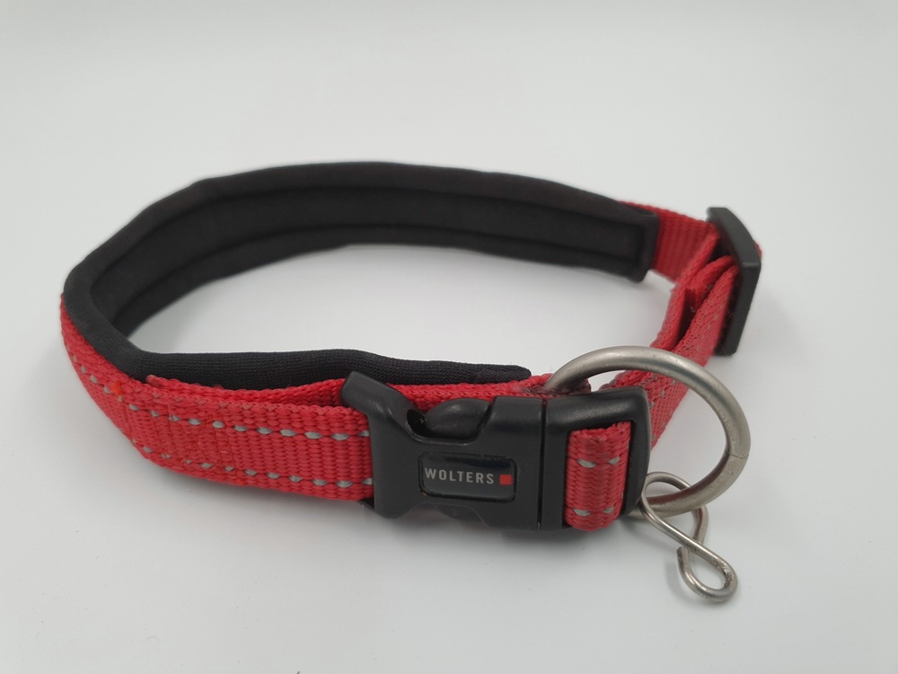 Hundehalsband Wolters, 40 – 45 x 2 cm, rotpink mit schwarzem Polster und reflektierender Naht