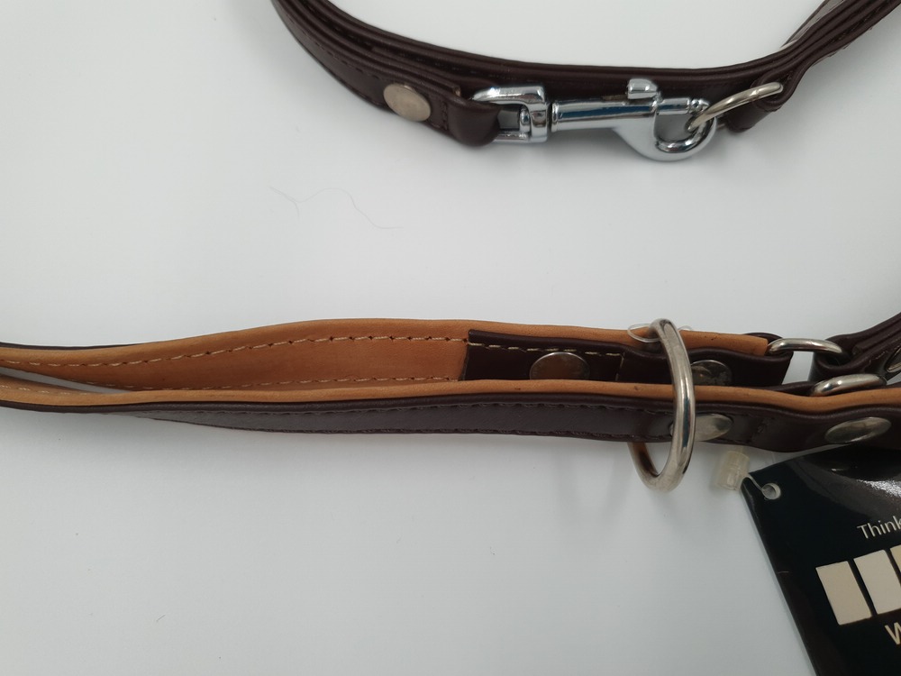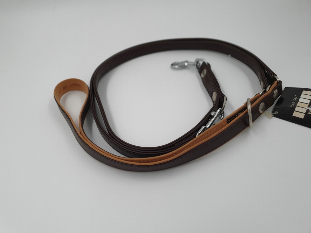 Hundeleine Leder Wouapy, 200 x 1,4 cm verstellbar, neu mit Etikett, braun / hellbraun