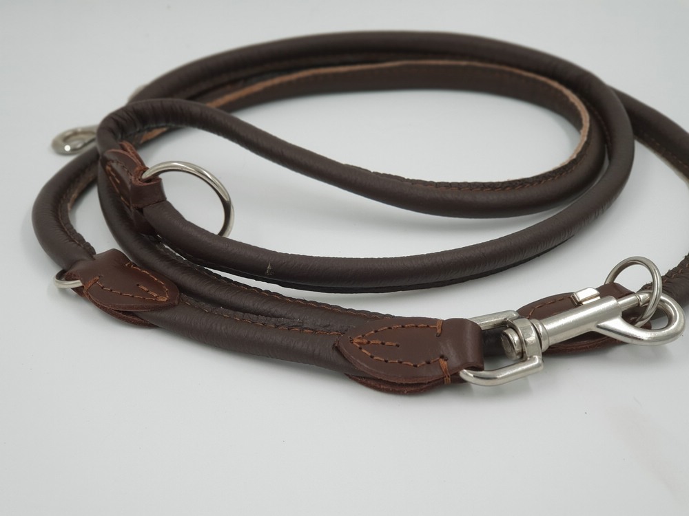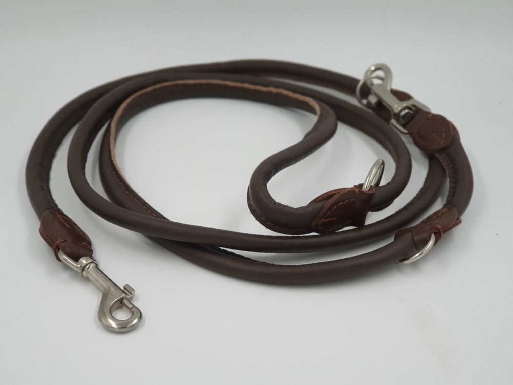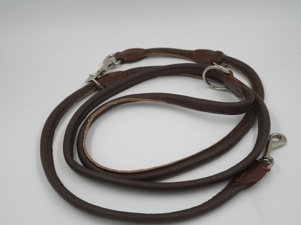Hundeleine, rundgenähtes Leder, 3-fach verstellbar 220 x 1 cm