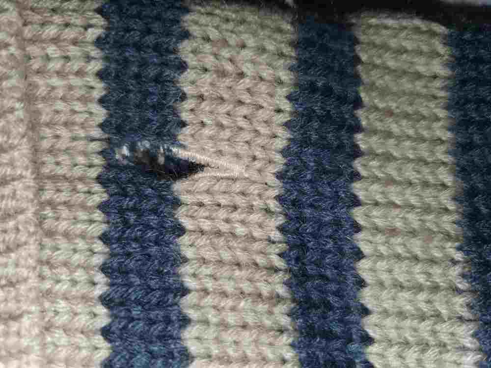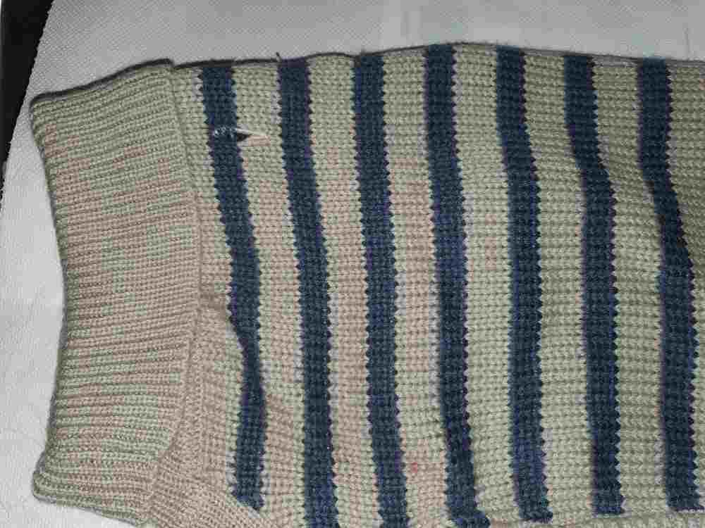 Hundepullover Trixie grau-blaue Streifen, Gr. 60 cm, Label auf dem Rücken, mit Kragen und Öffnung für das Halsband, Material 100 % Acryl, waschbar bei 30 Grad, leichte rote Verfärbung an der Beinöffnung vorne links (s. letztes Foto), ansonsten neuwertig ohne Haare, keine gezogenen Fäden