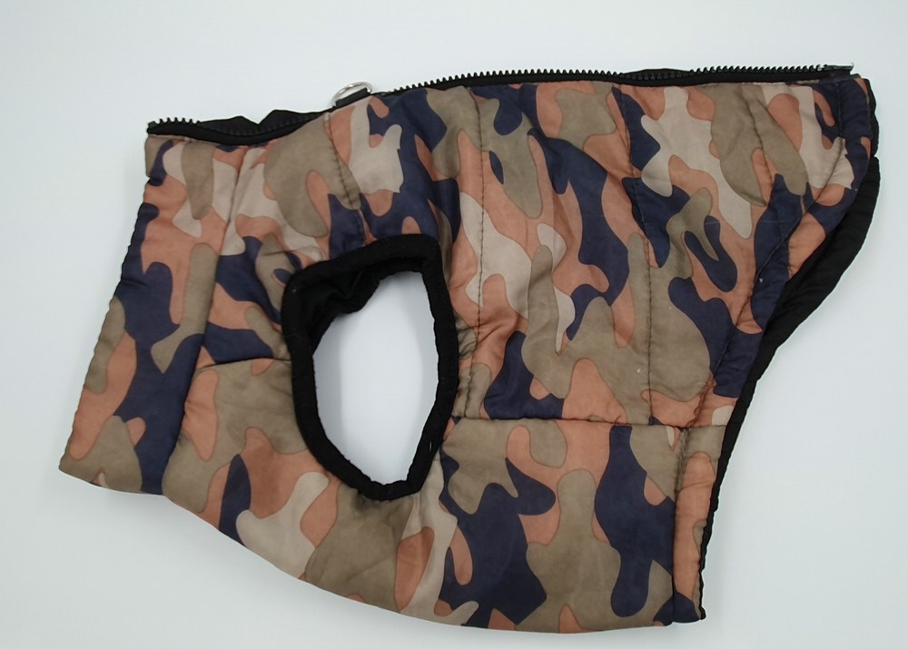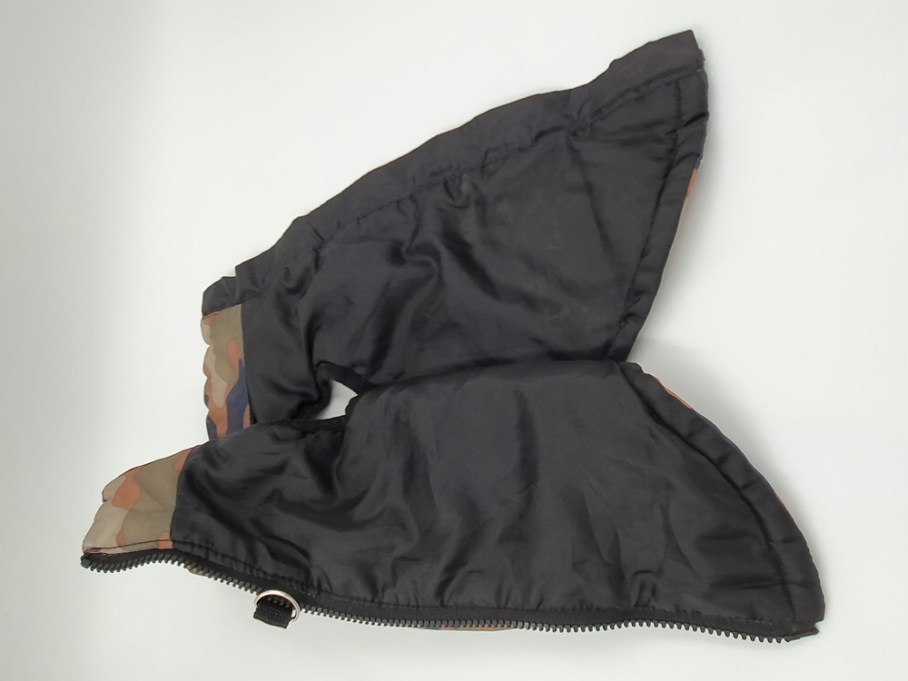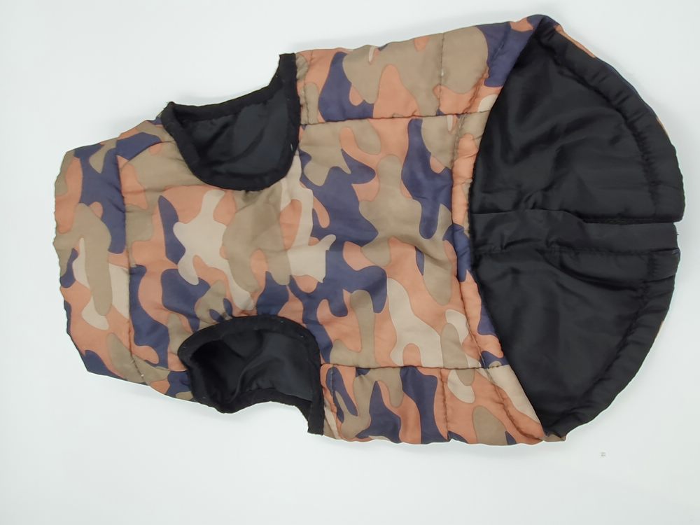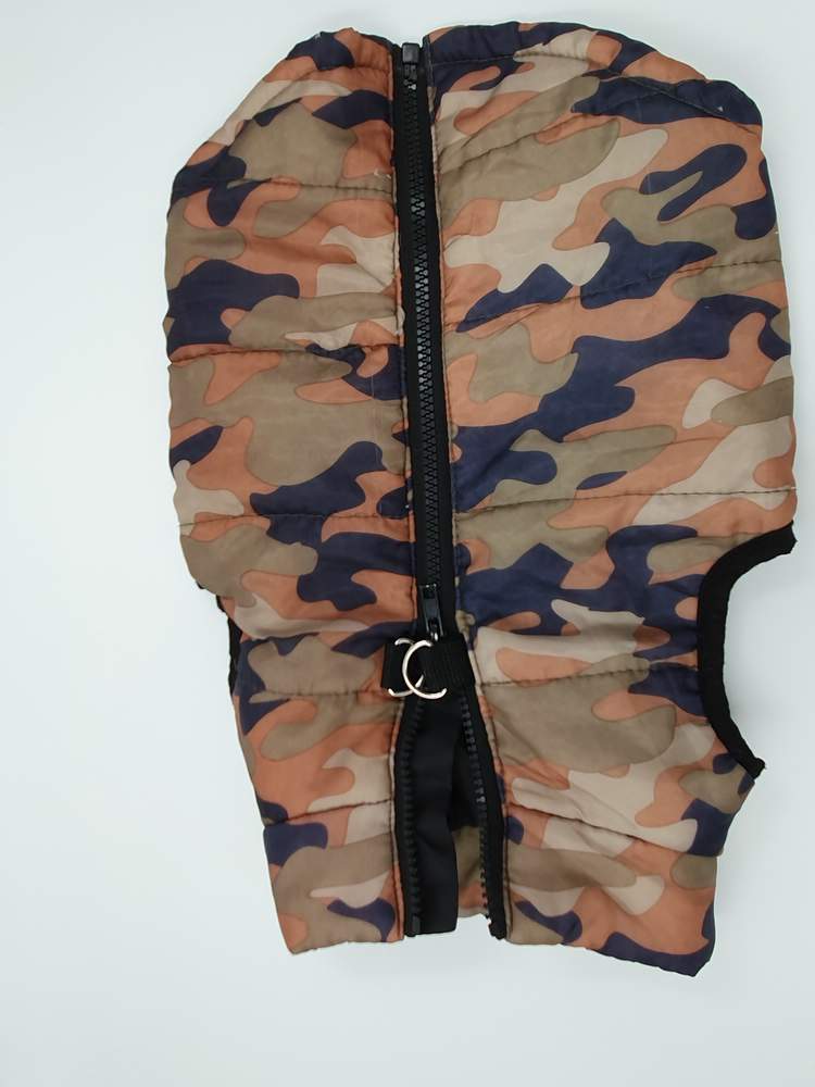 leichter, waschbarer Hundemantel in camouflage, Rückenlänge 35 cm, Brustumfang 55 cm, Reißverschluss + 2 Leinenringe auf Rücken, Polyester