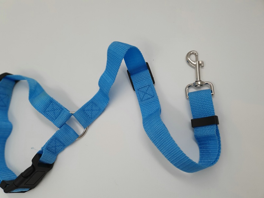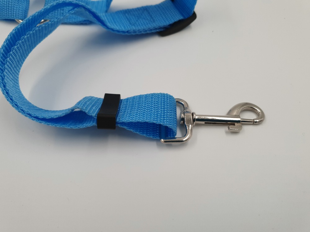 neuer Onesize Autogurt von OrcaJump, hellblau, oberer Teil mit Klickverschluss verstellbar 30 – 50 x 2,5 cm, unterer Teil mit Karabiner verstellbar 35 – 67 x 2,5 cm + Karabiner 6 cm
