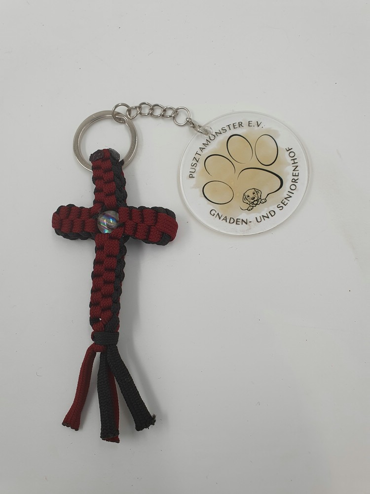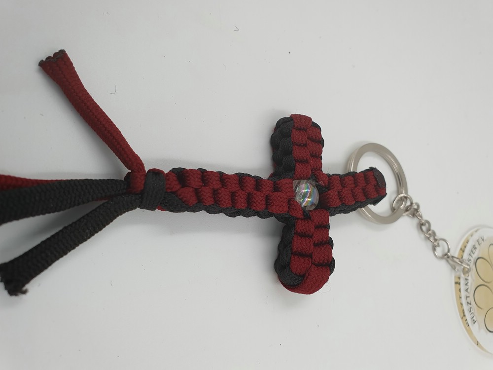 neuer Schlüsselanhänger Paracord Kreuz bordeaux-schwarz mit Perle, ca. 10 x 5 cm