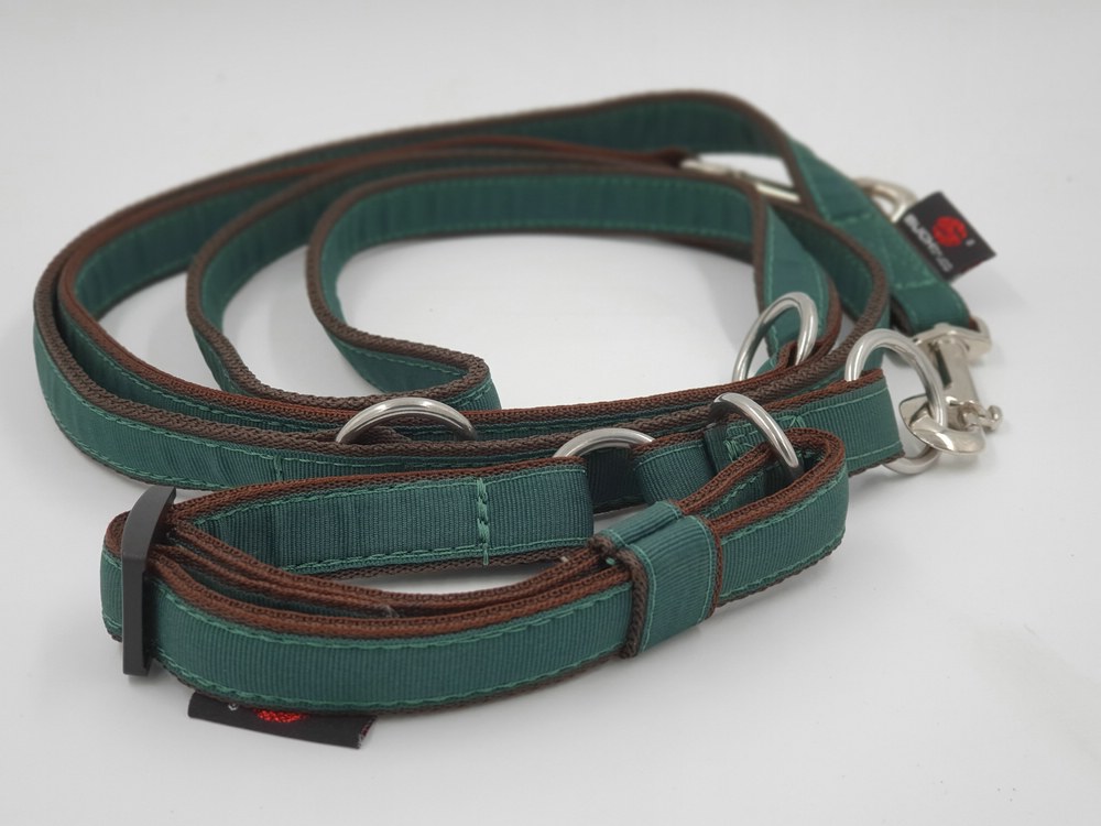 neues Set aus Halsband mit passender Langleine von Suchtrupp, Modell British Racing Green. Das Zugstopp-Halsband Gr. S passt bei einem Halsumfang von ca. 25 - 35 cm, Breite 2,0cm; die Langleine ist 3-fach verstellbar und hat eine Länge von 200 x 2,0 cm