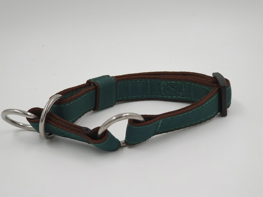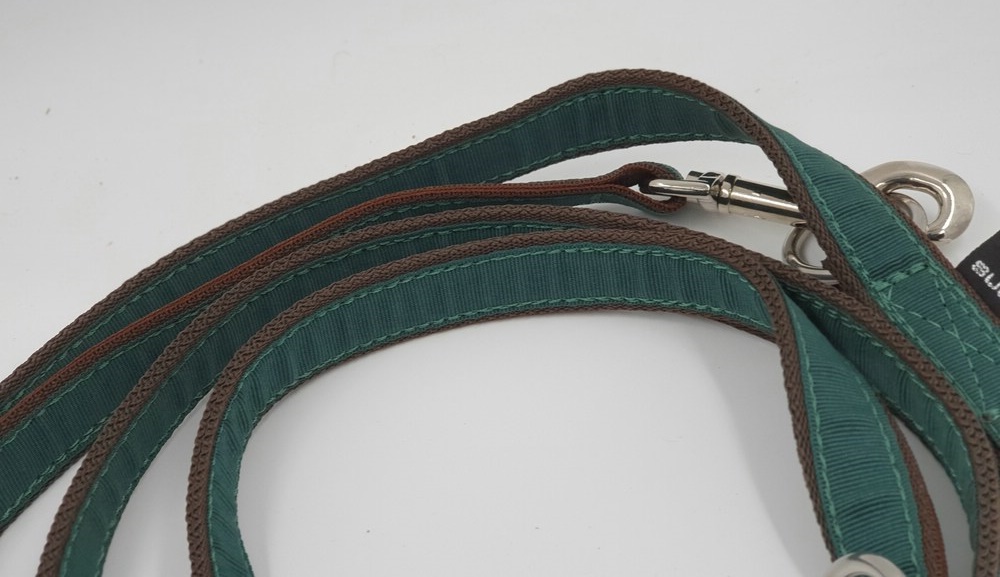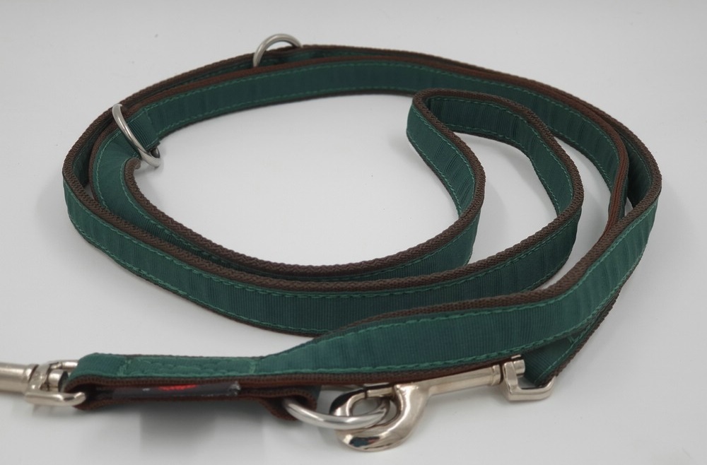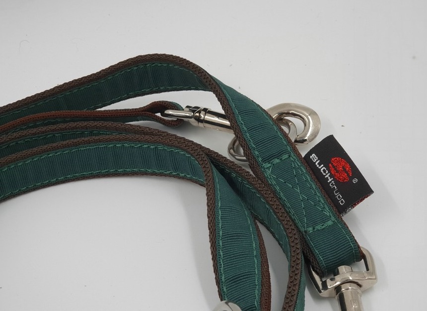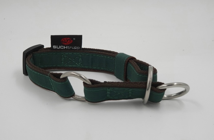 neues Set aus Halsband mit passender Langleine von Suchtrupp, Modell British Racing Green. Das Zugstopp-Halsband Gr. S passt bei einem Halsumfang von ca. 25 – 35 cm, Breite 2,0cm; die Langleine ist 3-fach verstellbar und hat eine Länge von 200 x 2,0 cm