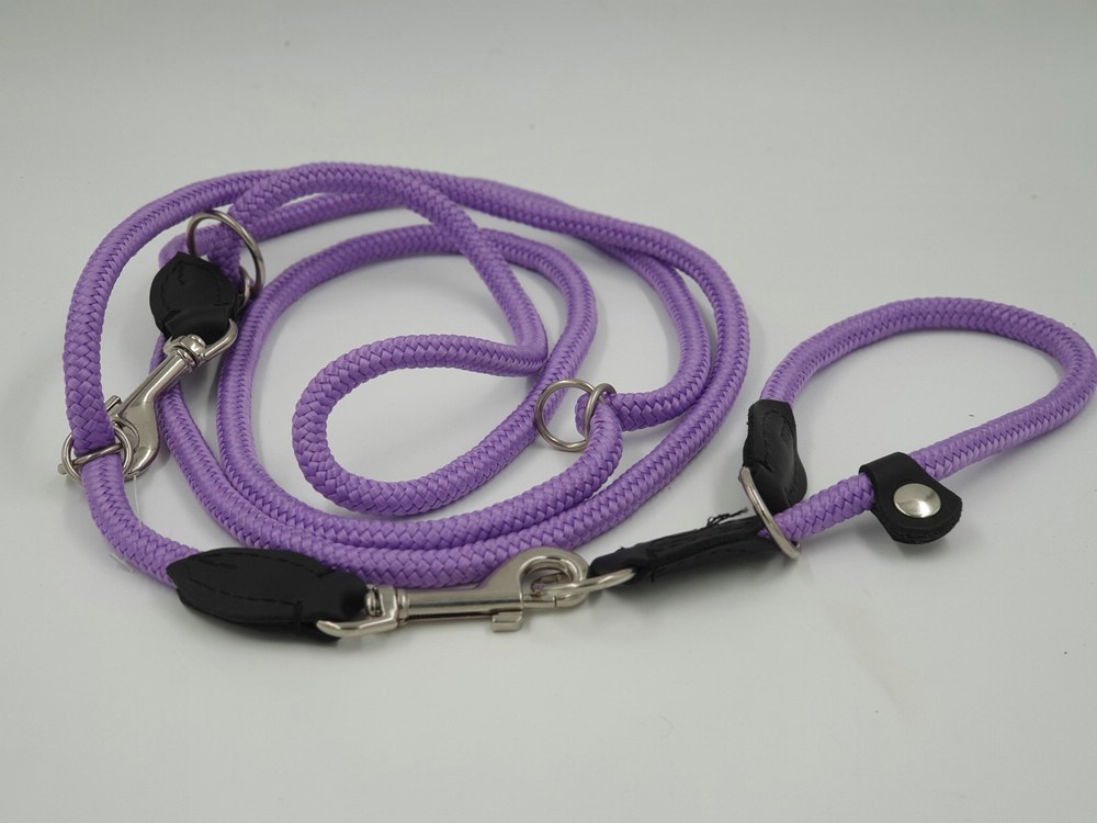 neues Set aus Tau: Zugstopp-Halsband mit einstellbarem Stopp, Größe 40 cm, und 3fach verstellbare Leine mit einstellbaren Ringen, Leine 220 x 0,8 cm, Farbe nach Wahl