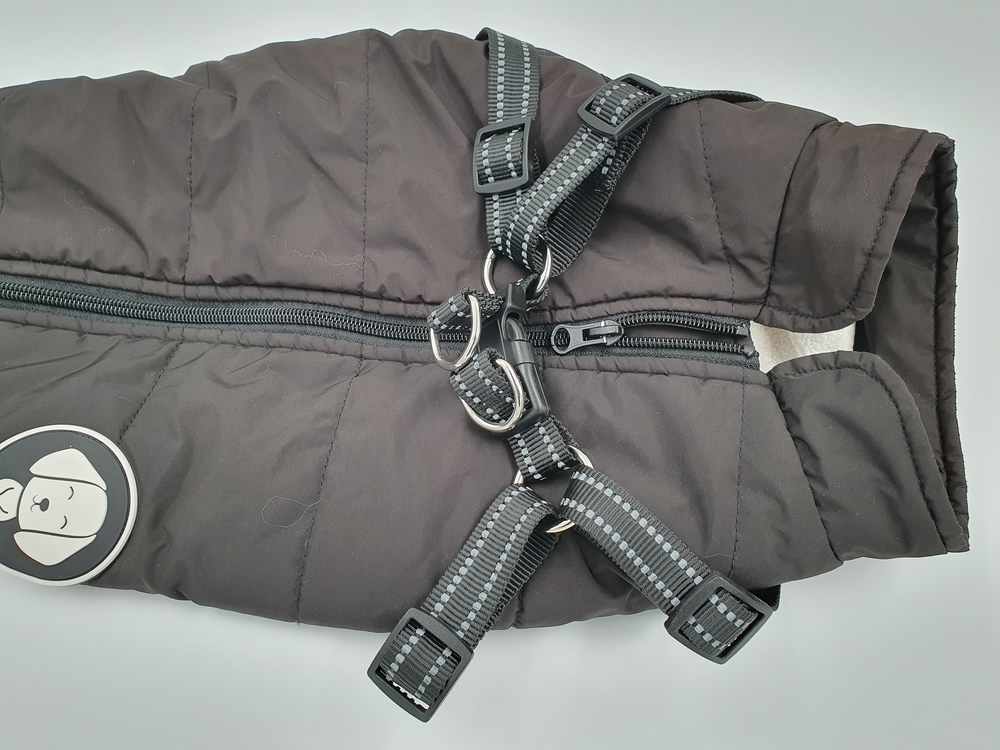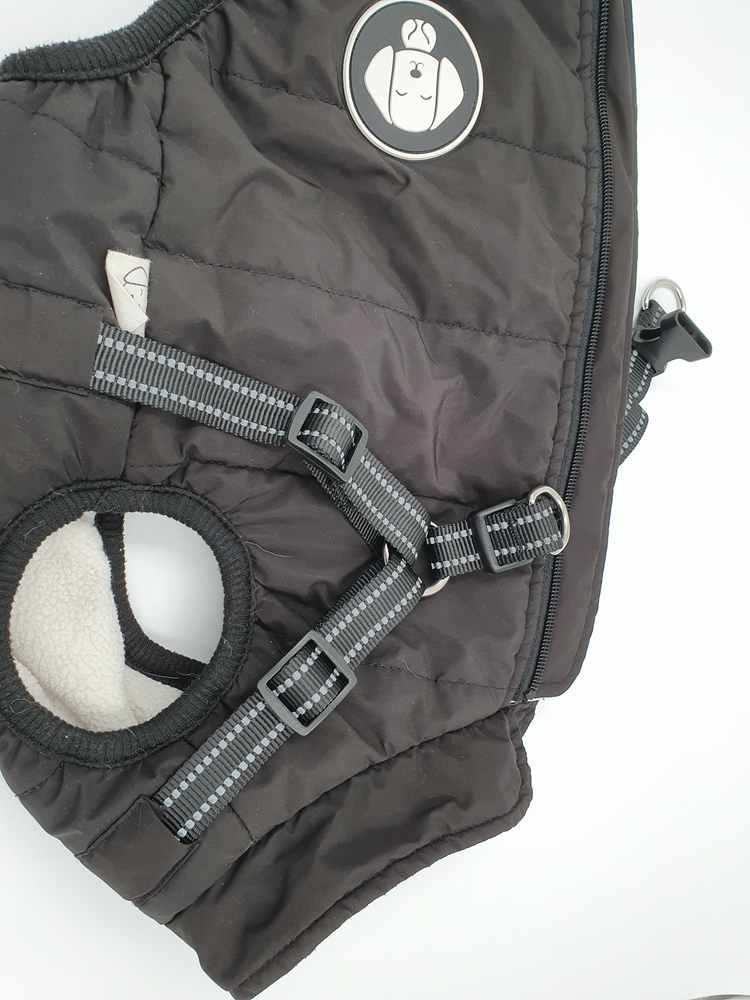 warmer Hundemantel mit Geschirr, schwarz, Gr. XL Rückenlänge 40 cm